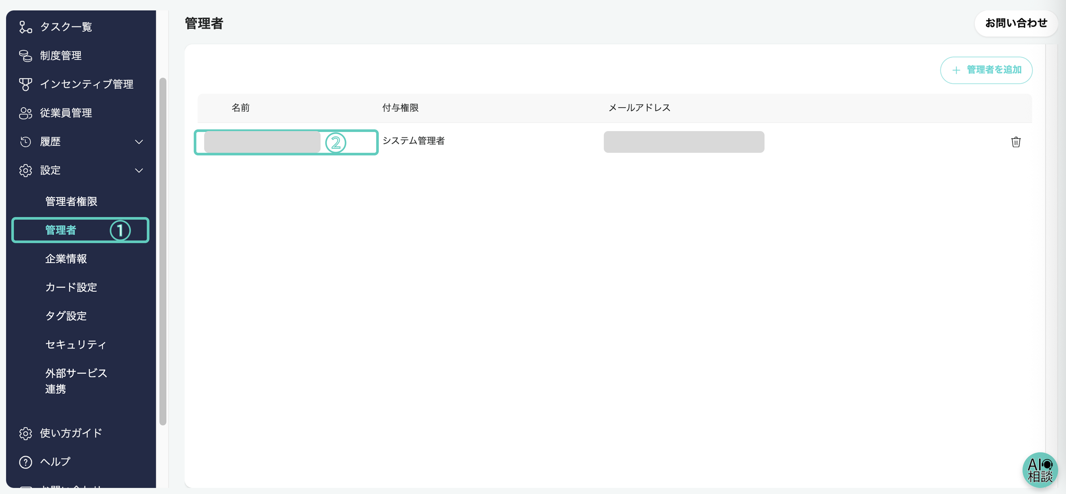 - システム管理者は、必ず1名以上設定する必要があります